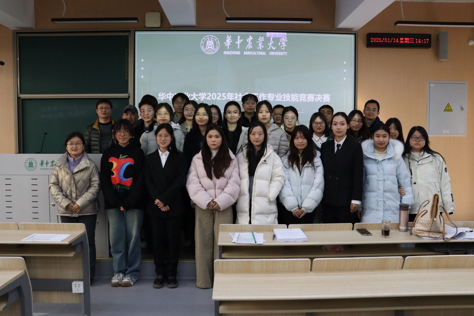 (通讯员 江欣怡 徐讯)2026年1月14日下午,社会工作服务技能大赛在二教105教室顺利举办。本次竞赛以“以赛促学,以赛促教”为核心,旨在搭建实践教学平台,深入现实场景,展现社工学子对社会痛点的关注与专业实践能力。本次活动的出席人员有文法学院副院长孙站成、社会工作系教师王翠琴、袁泉、张陆、余湛、 武汉市阳光社会工作服务中心总干事、文法学院行业导师杨文。