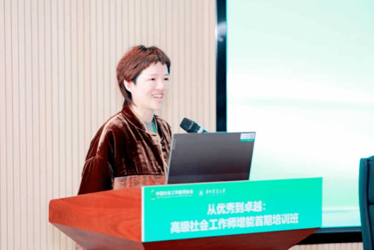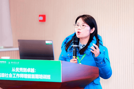 武汉市洪山区助力社会工作服务中心刘颖以央企物业背景下社工机构创办的独特经历为切入点,围绕“高级社会工作师的核心能力”这一主题展开分享,提出高级社工师需实现从“参加培训”到“共创共享”、从“执行者”到“引领者”的双重跃迁,为行业发展提供了全新视角。