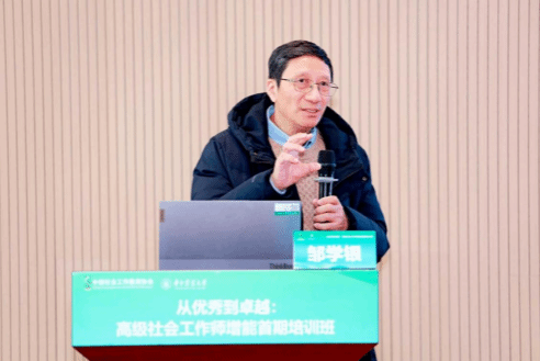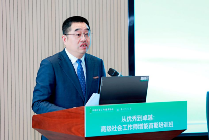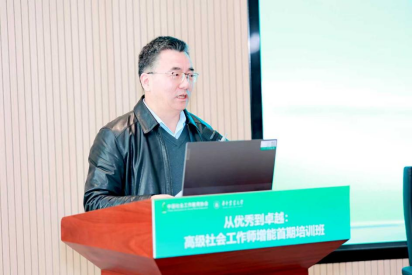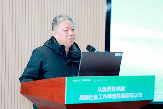 赵凯在致辞中对参会者表示欢迎。他指出,本次培训聚焦 “从优秀到卓越”,既是更新专业知识、提升职业技能的需要,也是推动社会工作专业化、规范化、本土化发展,助力国家治理现代化的重要举措。他还介绍了华中农业大学在社会工作学科建设与服务 “三农”、基层治理结合方面的探索成果,并表示学校将持续深化学科建设,贡献华农力量。
