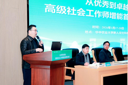 2026年1月17日至20日,由中国社会工作教育协会主办、华中农业大学承办的“从优秀到卓越:高级社会工作师增能首期培训班” 在华中农业大学新人文社科楼开班。来自全国各地的社会工作服务机构负责人、资深督导、高校实务专家以及社区工作者等高级社会工作师齐聚武汉,开展为期四天的学习研讨。