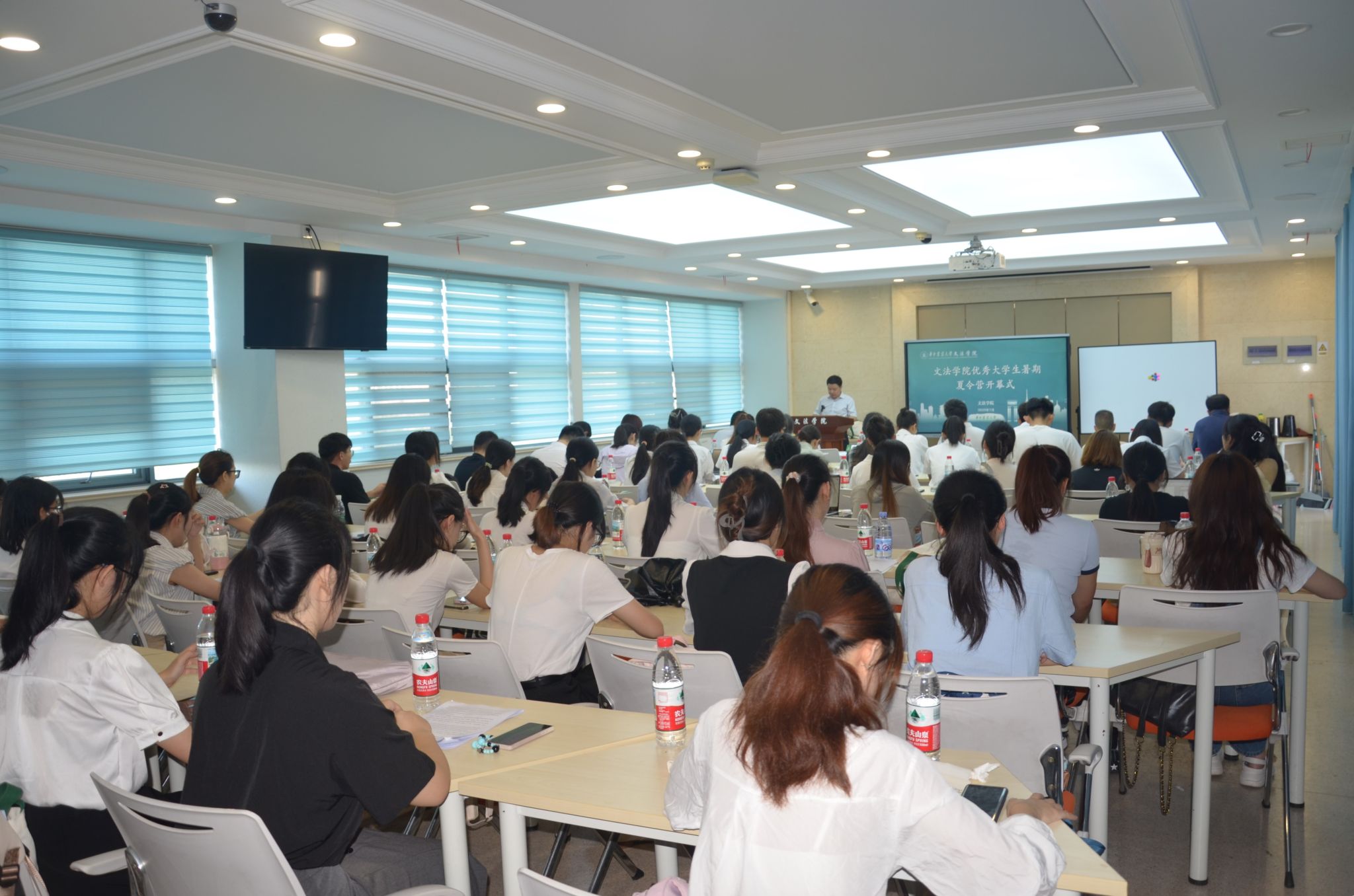 7月3日上午8:00,文法学院优秀大学生暑期夏令营正式开营。文法学院党委书记刘广乐、党委副书记周治瑜、院长田北海、副院长李祖佩、副院长孙占成、社会工作系主任张翠娥、法学系主任万志前、社会学系教师贾玉龙参加开营仪式。