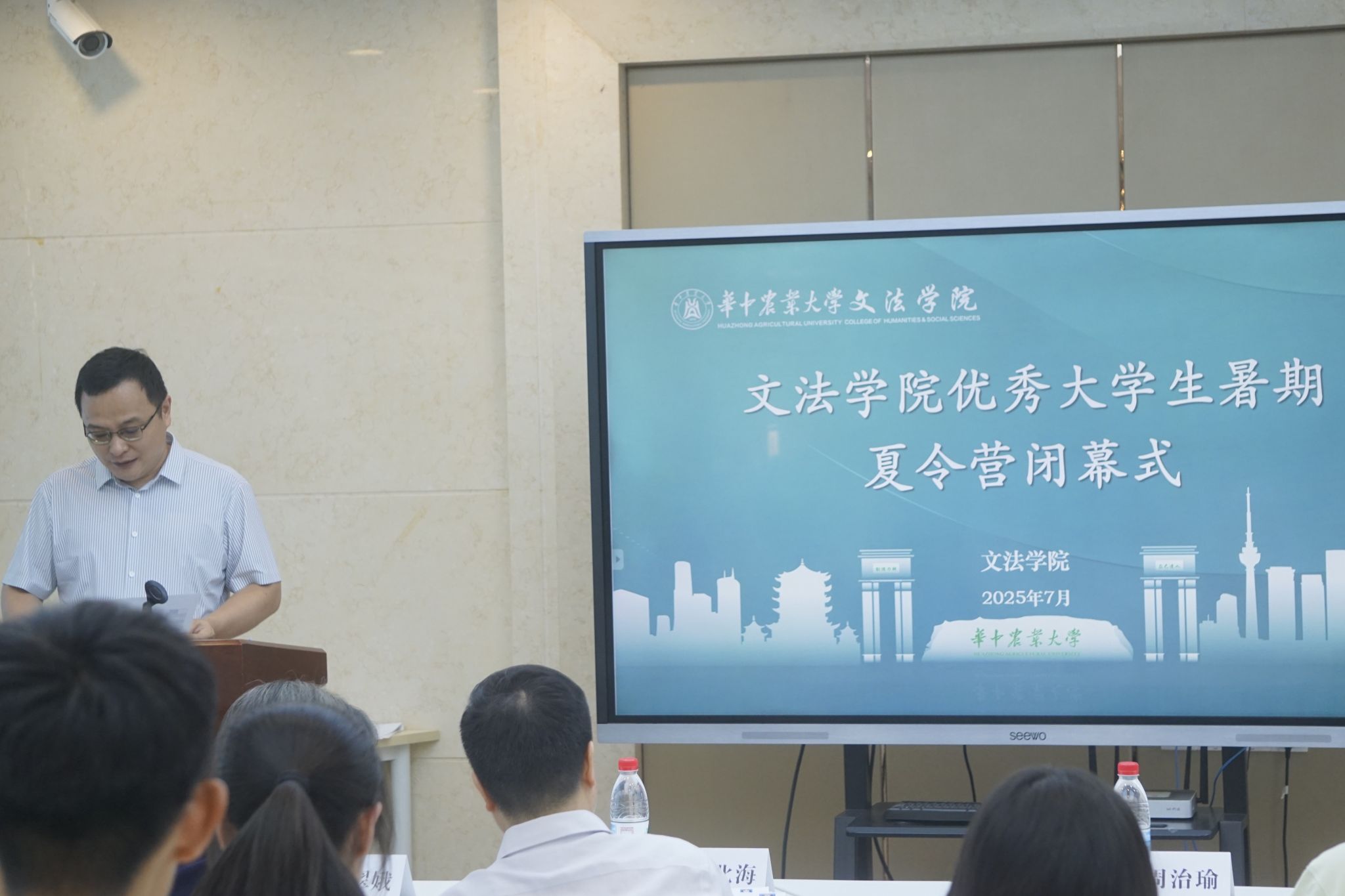 17:00,暑期夏令营闭营仪式于人文楼M612举行。李祖佩宣读优秀营员名单。随后,田北海对本次暑期夏令营进行总结发言,他强调夏令营是学校与优秀学子之间珍贵的“双向选择”过程。他真挚地表示,无论营员们是否选择加入文法学院深造,学院都衷心地祝福每一位同学拥有光明美好的未来。至此,此次文法学院优秀大学生暑期夏令营正式结束。