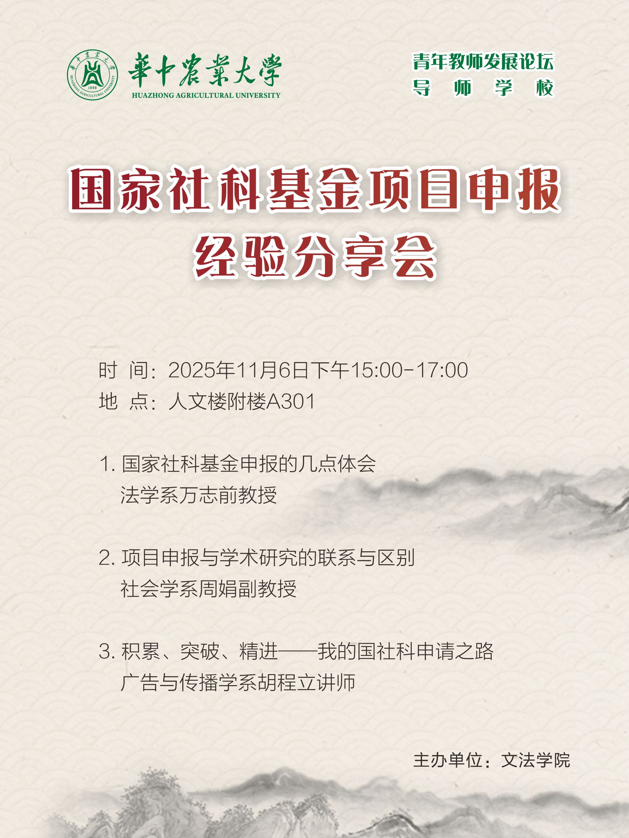 地址:湖北省武汉市洪山区狮子山街一号华中农业大学人文社科楼