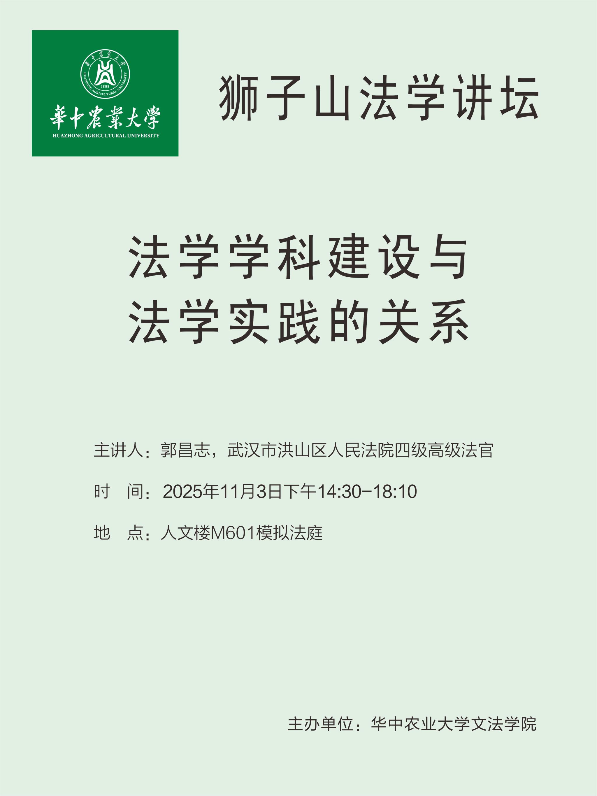 地址:湖北省武汉市洪山区狮子山街一号华中农业大学人文社科楼