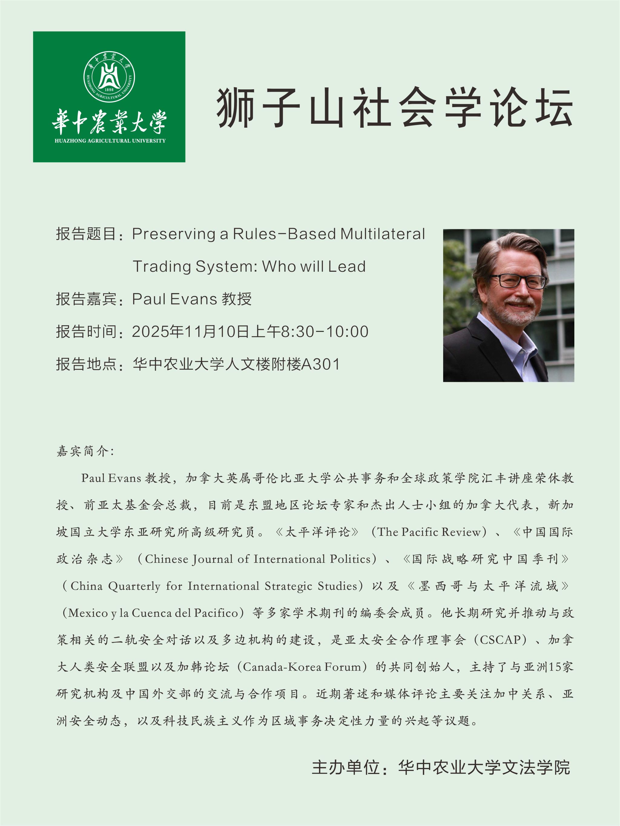 地址:湖北省武汉市洪山区狮子山街一号华中农业大学人文社科楼