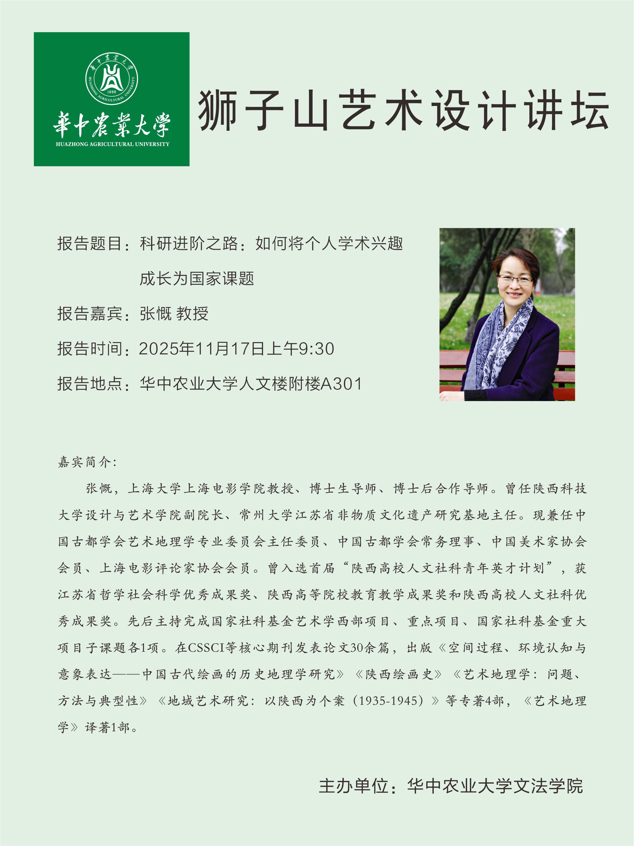 地址:湖北省武汉市洪山区狮子山街一号华中农业大学人文社科楼