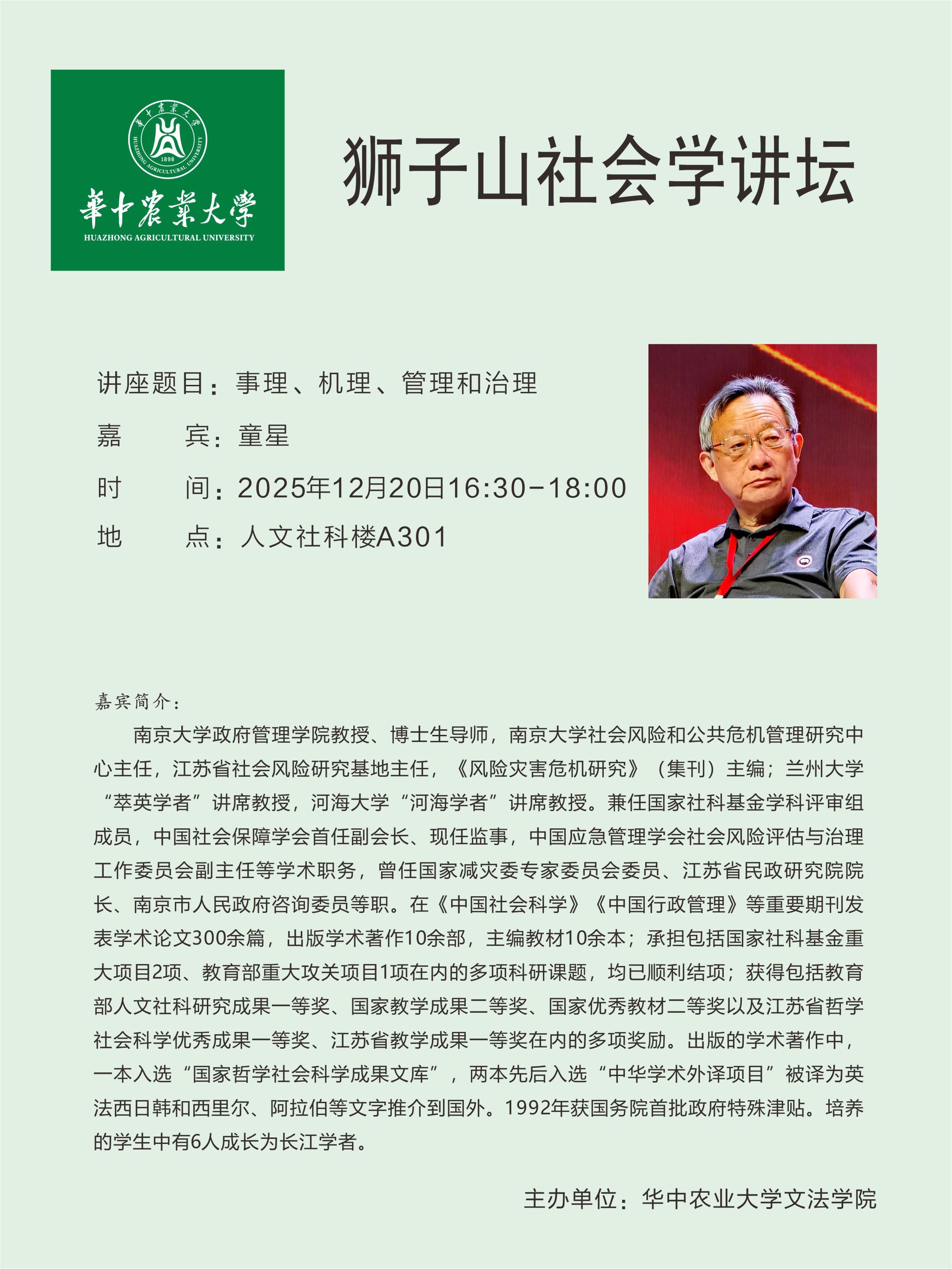 地址:湖北省武汉市洪山区狮子山街一号华中农业大学人文社科楼