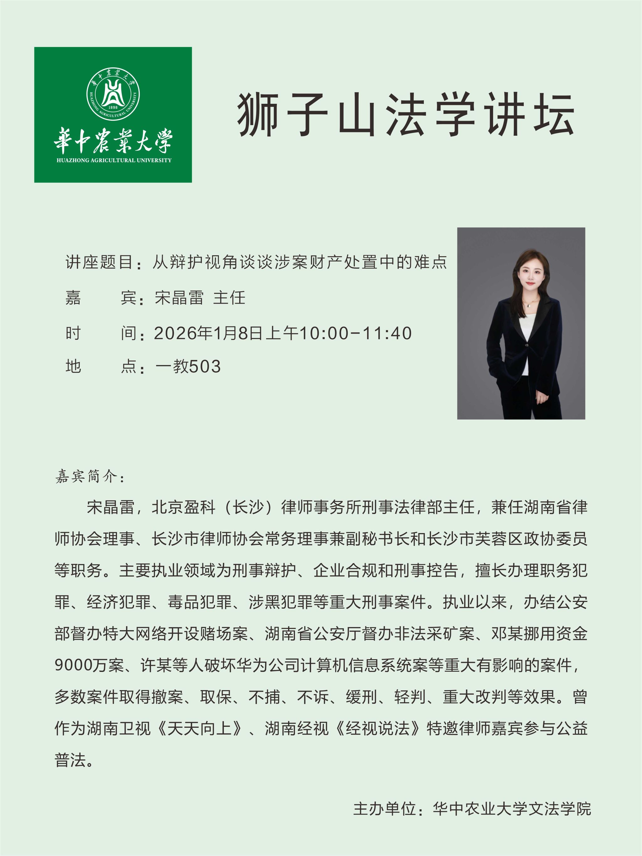 地址:湖北省武汉市洪山区狮子山街一号华中农业大学人文社科楼