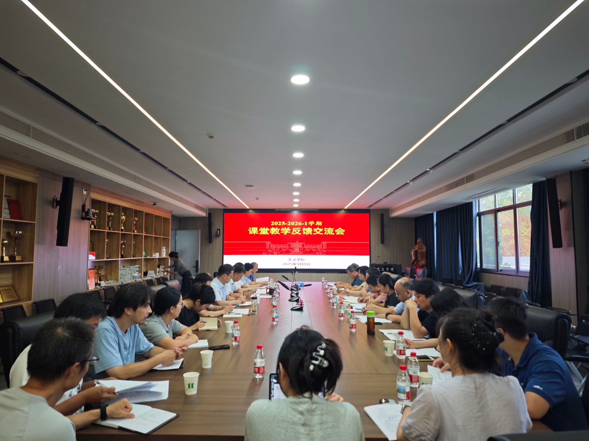 (通讯员:苏雪纷)9月8日下午,文法学院2025-2026学年第一学期“开学第一课”教学反馈交流会在人文楼附楼A301会议室举行。校党委常委、副校长杨少波,网络安全和信息化办公室副主任兼党委宣传部副部长黄辉、校园建设与安全保卫部规划管理办公室主任沈彬,本科生院质量管理处任霞,学院党委书记刘广乐,院长田北海教授,院班子成员、各系(部)主任及授课教师代表参加会议。会议由教学副院长孙站成主持。